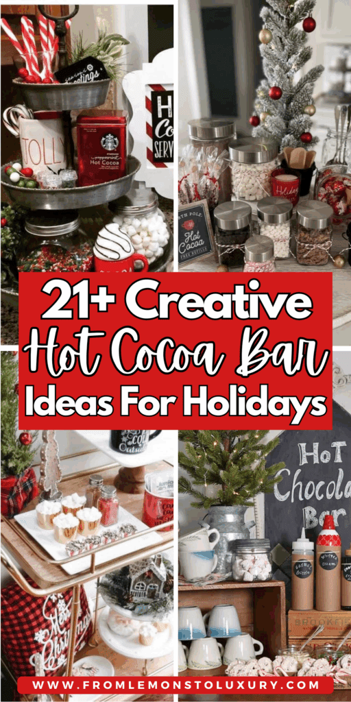 From DIY hot chocolate bar setups with mason jars to elaborate holiday displays with charcuterie boards and festive decor, there’s truly an idea here for every style and space.